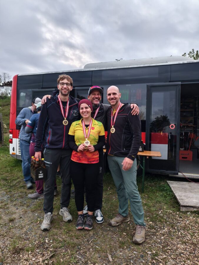 Am 11. und 12.10. reist der DGCG als Team Böllböllkernöl zu den Österreichischen Vereins-Staatsmeisterschaften in die Pampa, um einen bereits zweimal in Serie gewonnenen Titel zu verteidigen. Diesmal ist quasi ganz Österreich vertreten, und die Vorzeichen haben auf dem Papier schon besser ausgesehen. Zum Glück springt Michael Narath ein, um den verletzten Leon Sonnleitner zu vertreten. Raphaela Narath, Niklas Schaffer und Stefan Sonnleitner komplettieren das Team, das bereit ist, alles zu geben. Nach einer soliden Leistung in der Seeding-Scoreplay-Runde über 9 Bahnen steht die Gruppenphase mit 3 Spielen am Samstag an. Das Team findet schnell zusammen, und in der letzten Runde am Samstag gegen die Wiener Wurffeunde, die im Seeding als Erstgereihte überzeugen konnten, gelingt mit einem weiteren Sieg die erste Sensation. Somit muss am Sonntag nur eine der beiden offenen Partien gewonnen werden, um ins Halbfinale einzuziehen. Nach einer unfassbar knappen Partie gegen die sympathischen Razorback Frischlinge, die ganz knapp gewinnen können, wird das Spiel gegen Steel City zum Pflichterfolg. Im Semifinale wird Geschichte geschrieben: Stefan hat gegen einen bärenstarken Flo Lingenhel keine Chance, und Raphaela sowie das Herrendoppel Niklas und Michael liegen 3 Bahnen vor Schluss noch gleichauf. Raphaela gewinnt die nächsten zwei Bahnen solide und nervenstark, womit das Doppel entscheidet. Nachdem die vorletzte Bahn gewonnen und die letzte verloren wird, entscheidet sich die Partie nach zwei Zusatzholes im Sudden Death zu unseren Gunsten, weil Michael und Niklas großartiges Discgolf zeigen und den Gegnern aus Tirol den letzten Nerv ziehen können. Im Finale gelingt die Revanche gegen die Razorback Frischlinge deutlich, weil das ganze Team schließlich Topleistungen abrufen kann, wobei Niklas einen sehr starken Dominik Reutterer schlagen kann, die „Naraths“ das Pärchenduell gegen Daffert/Strutzenberger dominieren und Stefan gegen Julia bei Zweipunktführung nicht mehr fertig spielen darf. Die SpielerInnen bedanken sich beim Veranstalter Martin Nittmann, den Gastgebern der „Pampa“ und allen GegnerInnen und FreundInnen aus ganz Österreich. Es war ein unfassbar spannendes und tolles Wochenende. Der Pokal bleibt in Graz!!